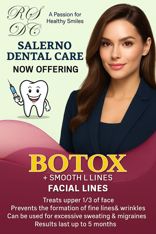 Smooth facial lines and rejuvenate your appearance right here at your dental office. Dr. Salerno now offers Botox treatments to help you look and feel your best.